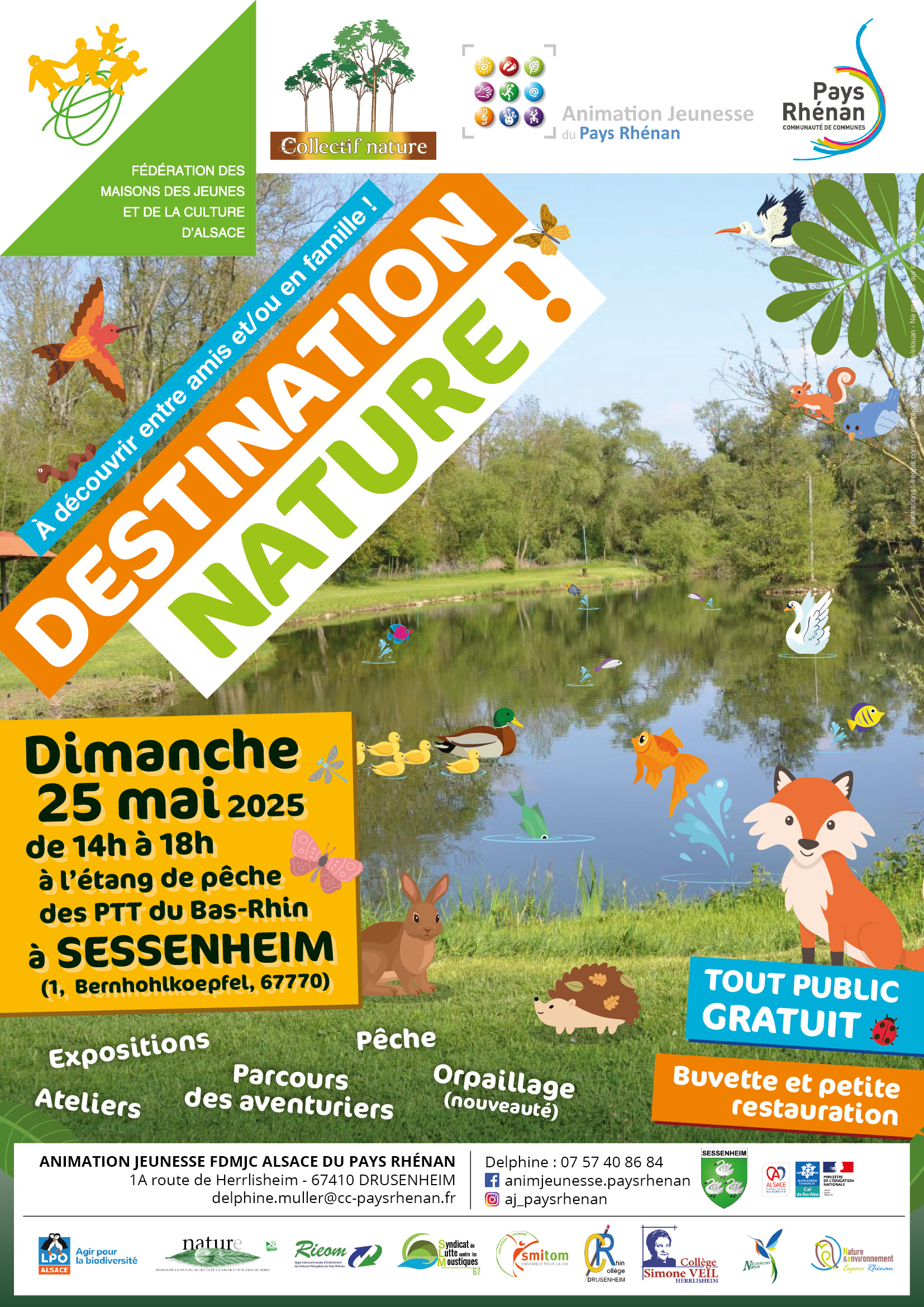 L’événement « Destination Nature » aura lieu le dimanche 25 mai 2025 à l’étang de pêche des PTT du Bas-Rhin de Sessenheim.